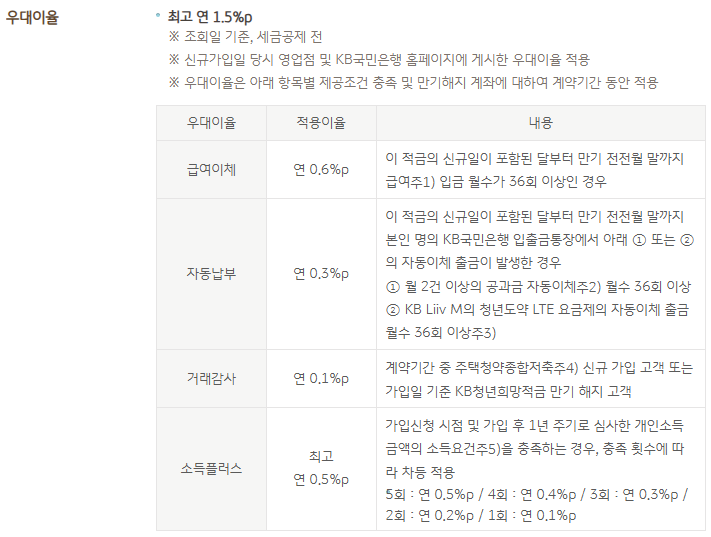 은행 기본 금리 (5년) 특이사항 국민은행 4.5% 우대금리 +1.5%