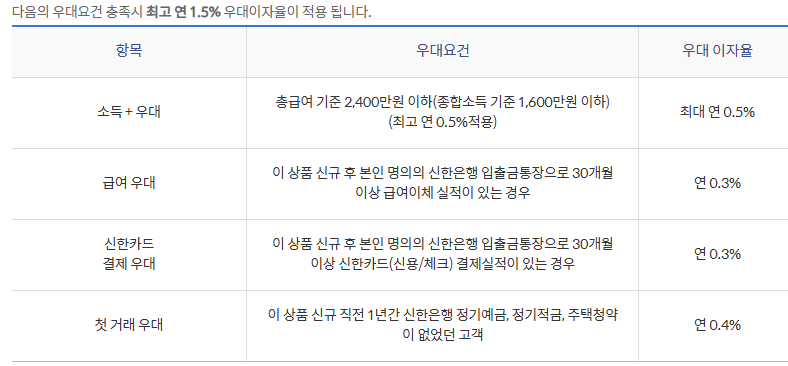 신한은행 4.5% 우대금리 +1.5%